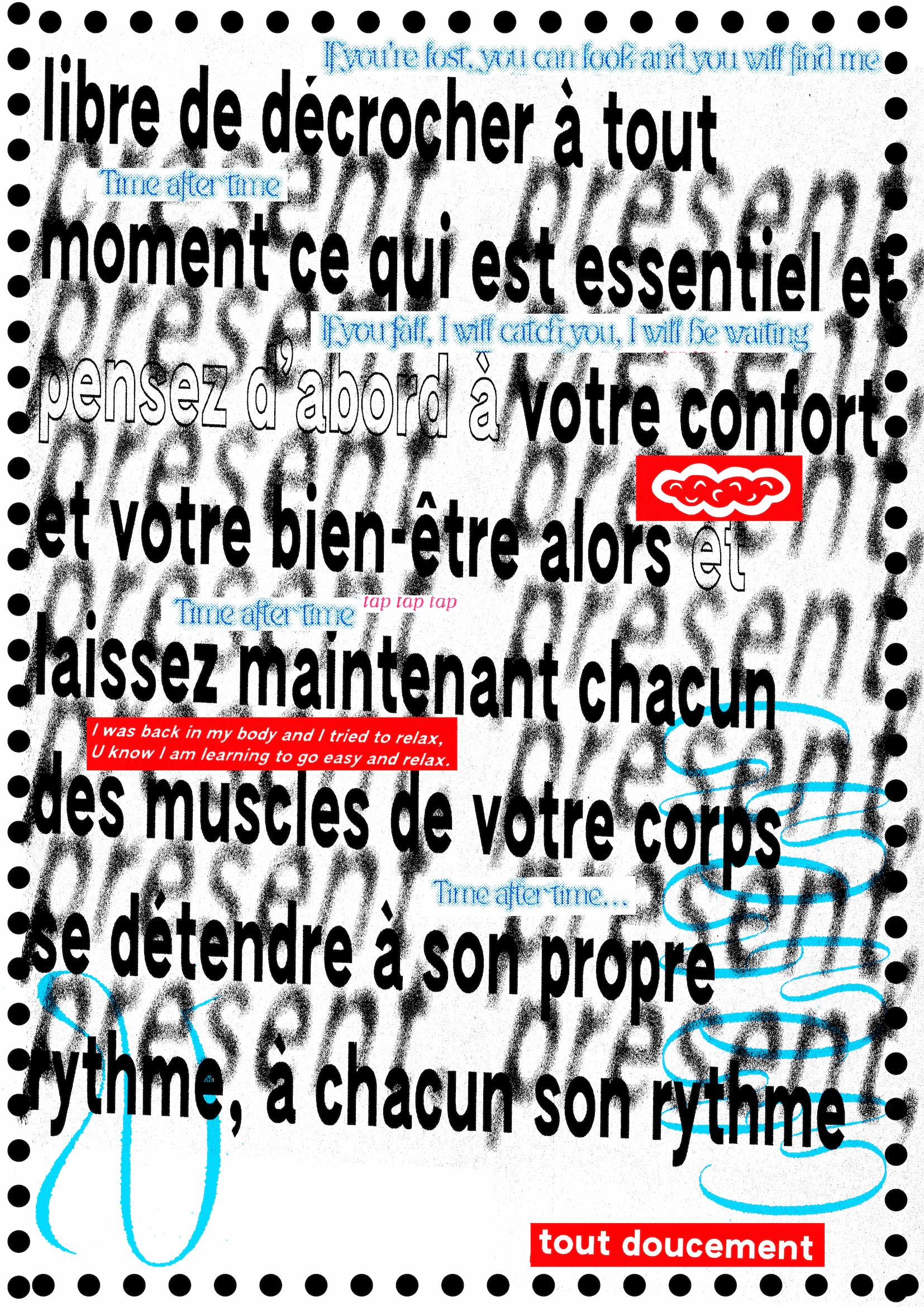 affiches réalisées pour la revue Phylactères et la performance d’Auriane Preudhomme et Camille Videcoq, lors de Florilège vol. 2 à Trois_a, Toulouse.