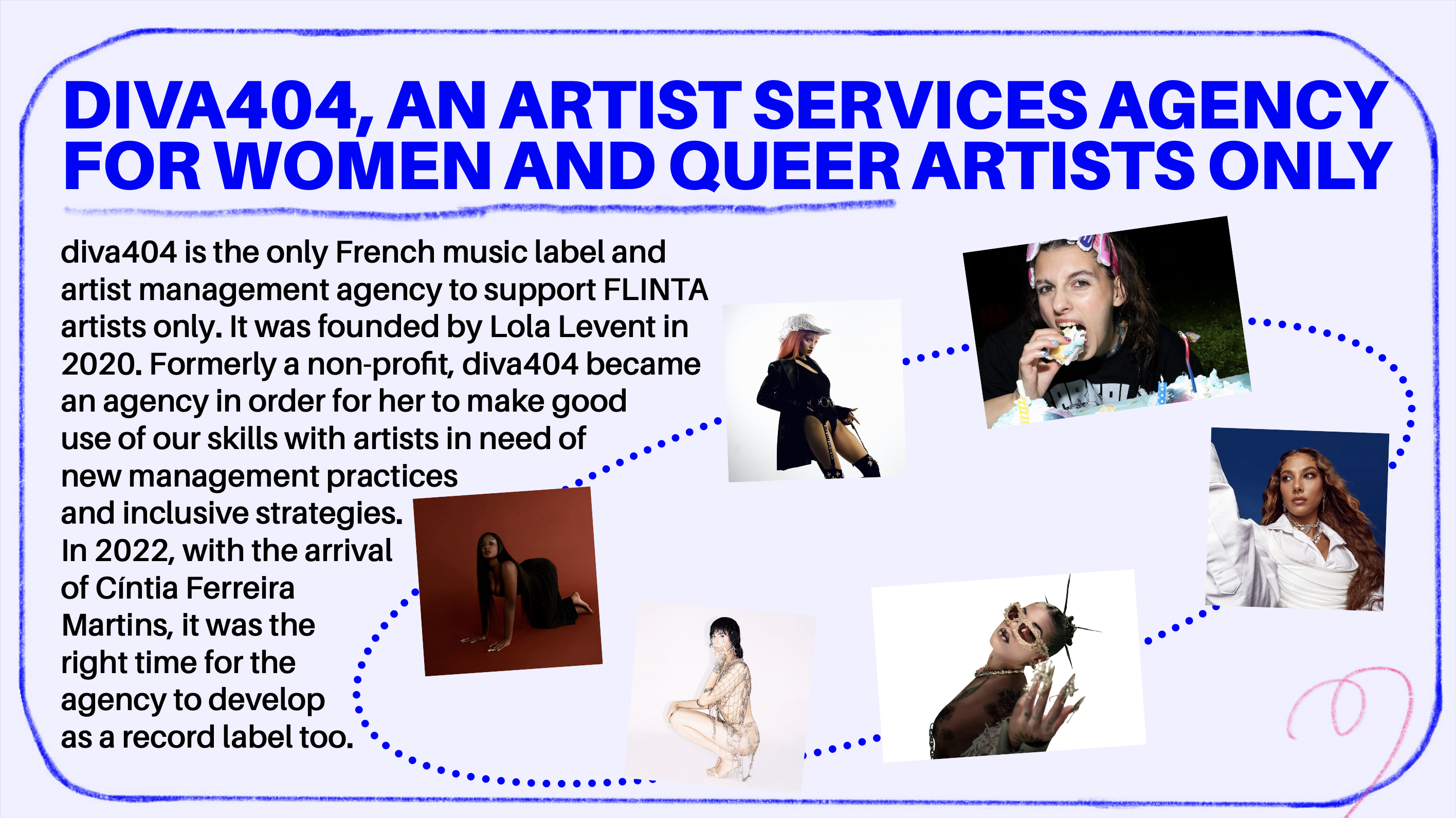 Since 2024, we have been expanding and enhancing the visual identity of diva404, a label and management agency that works to represent and defend FLINTA artists in the music industry. The identity plays on the figure of the diva, eccentric and unapologetic, and the 404, like the bug in the system that these marginalized identities represent.