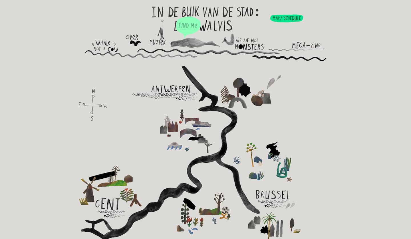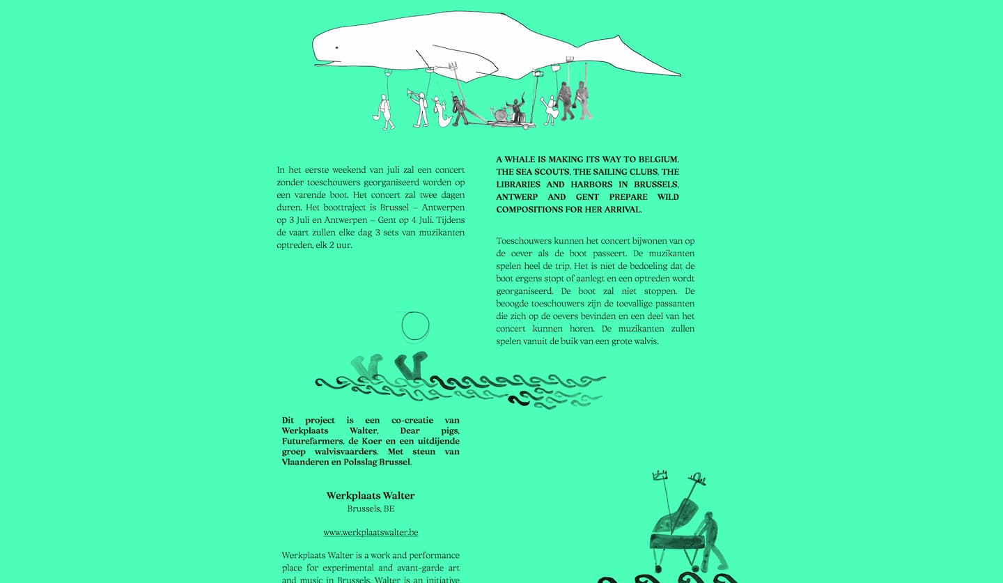 Projet en collaboration avec futurefarmers et Éléna Cerisier, une baleine traversant la Belgique avec en son ventre des artistes et musicien.ne.s. Le site internet permet de s’immerger, suivre et prolonger cet évènement festif et poétique.